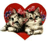 Kittens in love with heart and flowers. |